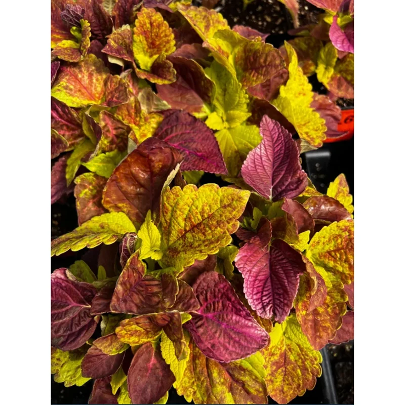 Experience the stunning beauty of the Alabama Sunset Coleus live plant, a captivating variety known for its spectacular foliage. Also scientifically known as Coleus scutellarioides, this particular cultivar is celebrated for its dynamic, fiery colors that transition beautifully from vibrant yellow to rich orange and deep red. Often referred to by other charming names such as ‘Bellingrath Pink’ or ‘Texas Parking Lot,’ this plant is a true showstopper. It’s a bushy, robust, and particularly heat tolerant Coleus, making it an excellent choice for gardens in warmer climates or during hot summer months. These live starter plants are ready to be integrated into your landscape, providing an instant splash of rich, warm hues. The Alabama Sunset Coleus live plant is primarily grown for its ornamental leaves, offering continuous visual interest throughout the growing season without relying on blooms.