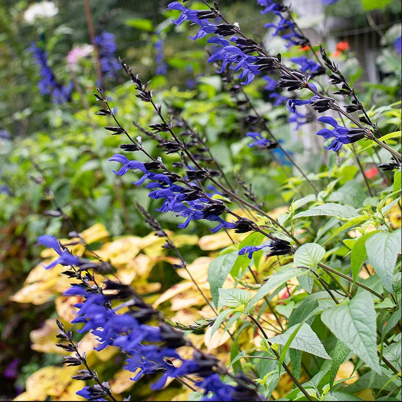 - Striking Visual Appeal: With its vivid cobalt blue flowers set against dark, almost black, calyxes and stems, the ‘Black and Blue’ Salvia provides an unparalleled visual spectacle. This dramatic color combination adds depth and interest to garden beds, making it a focal point.