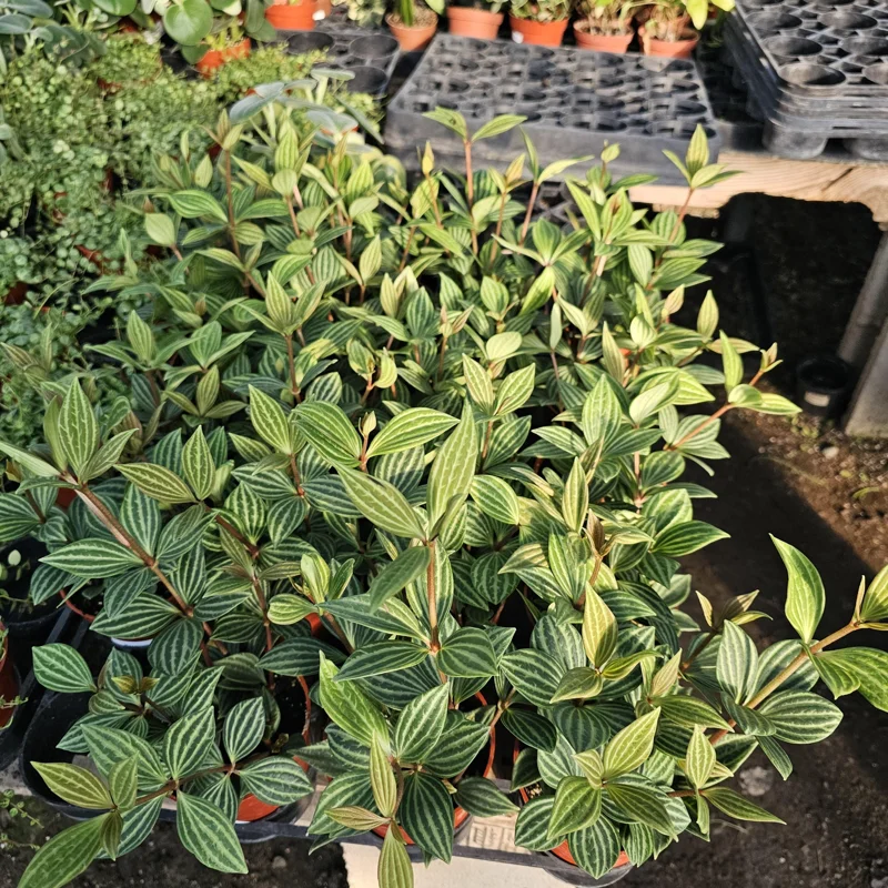 Distinctive Striped Foliage: The oval leaves of this trailing peperomia houseplant showcase a captivating pattern of light-green and silver stripes. This unique variegation adds significant visual interest and texture, creating a striking contrast in any plant display or terrarium, making it a true conversation starter.