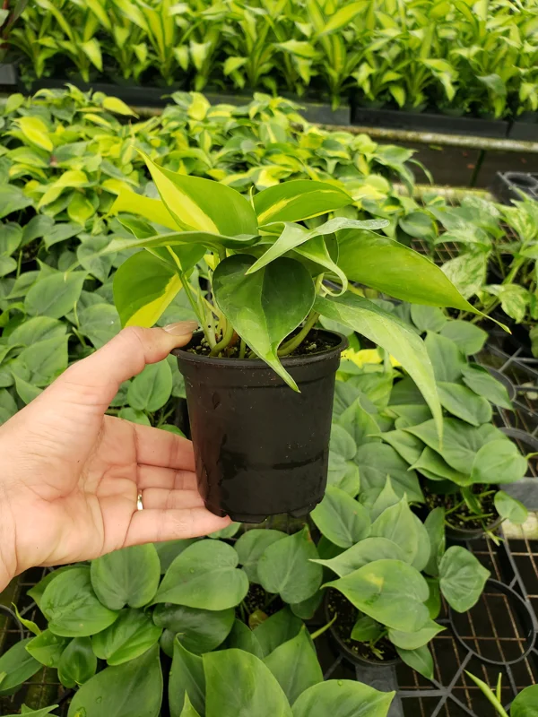 - Q: What size pot does it come in? A: This philodendron brasil live plant is delivered in a standard 4 Inch pot, providing a healthy foundation for its initial growth in your home. You can repot it into a slightly larger decorative pot upon arrival or when it outgrows its current container.