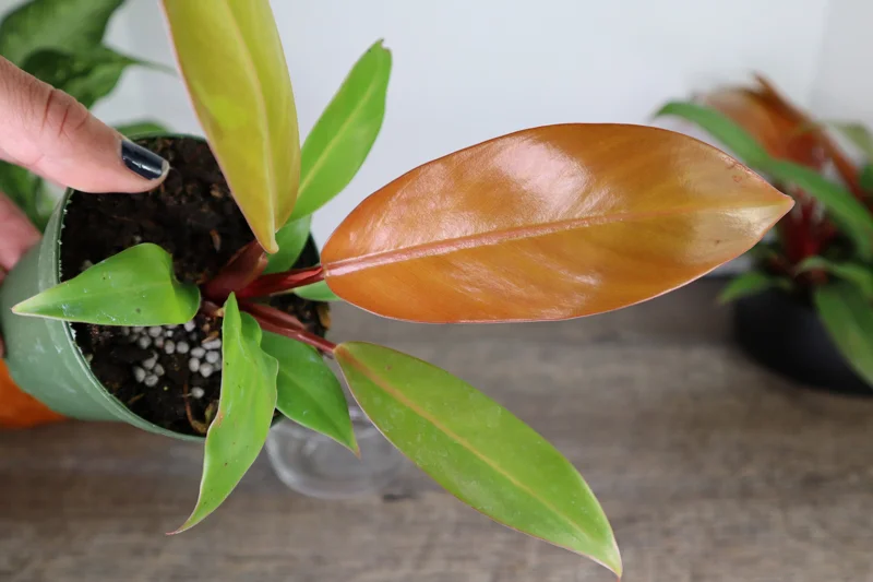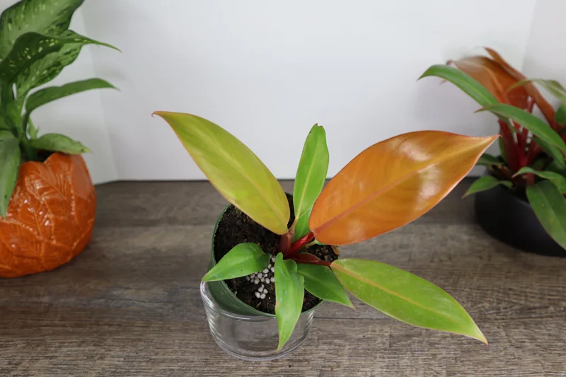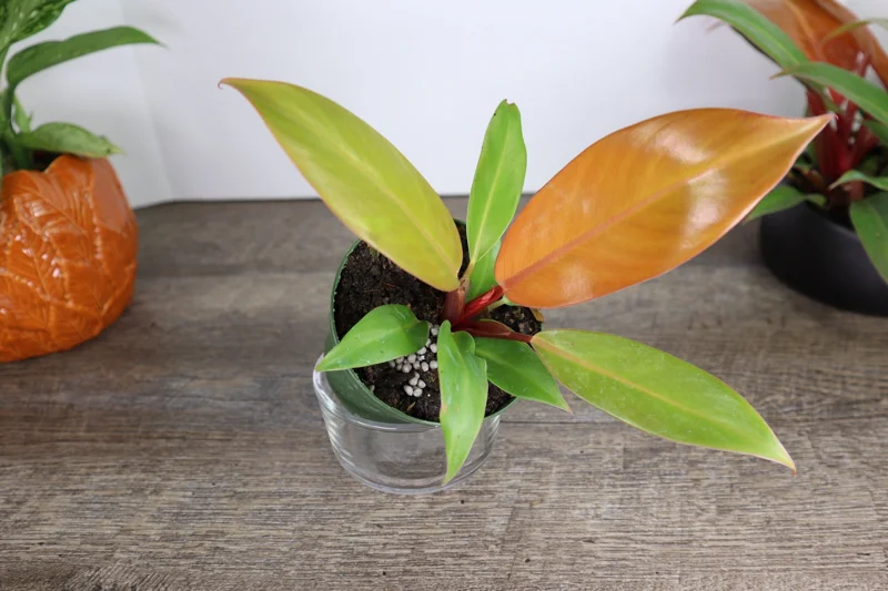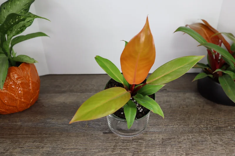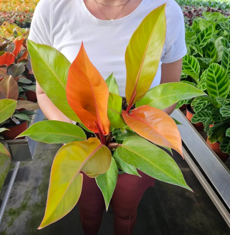 - Stunning Foliage Color: This philodendron boasts striking leaves that unfurl in a vibrant orange, gradually maturing to a rich coppery green. This continuous color transformation provides year-round visual interest, making it a unique focal point.