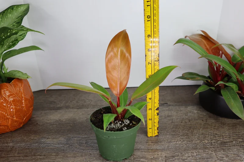 This beautiful Philodendron Prince of Orange live plant arrives as a healthy, thriving specimen nestled in a 4-inch nursery pot. The plant’s overall height typically ranges from 6 to 10 inches from the base of the pot, with a spread that will gradually increase as it matures. Known for its moderate growth rate, you can expect this philodendron to steadily fill out and become a prominent feature in your indoor garden. In ideal conditions, it can eventually reach a mature height of 2-3 feet tall and wide, though its compact nature makes it easy to manage through occasional pruning.
