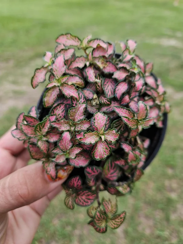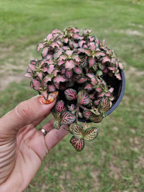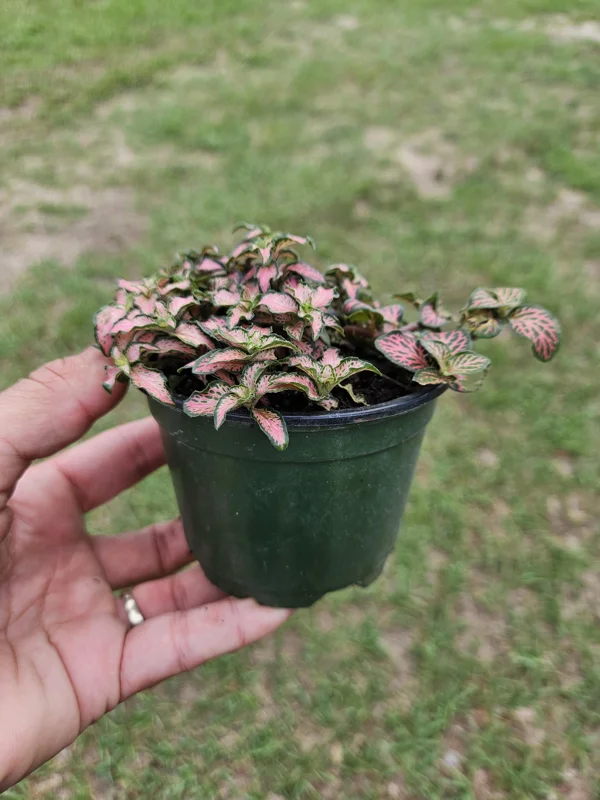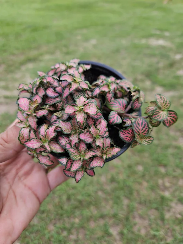 - Q: How big does this plant get? A: The pink fittonia live plant typically grows to a compact size, reaching about 12 inches (30 cm) in both height and spread. Its smaller stature makes it ideal for tabletops, shelves, and terrariums.