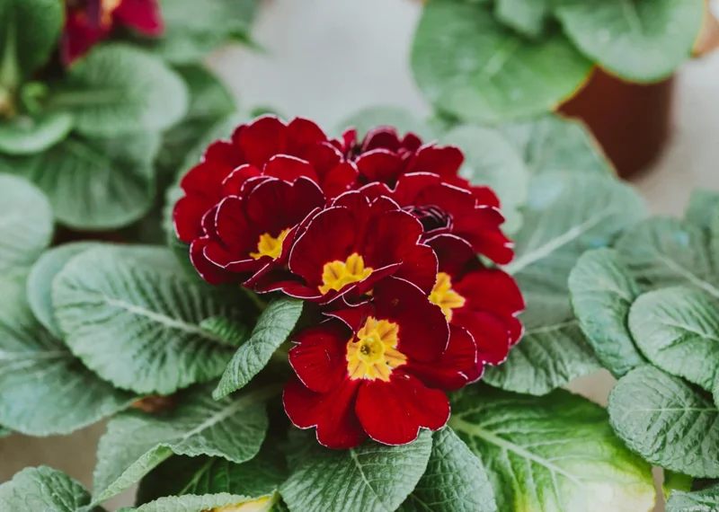 Caring for your Red Primrose is simple. It thrives in partial shade outdoors, enjoying morning sun and afternoon shade. Indoors, provide bright, indirect light. Keep temperatures cool, ideally between 50–70°F (10–21°C), and protect it from frost and extreme heat. Water when the top inch of soil feels dry, ensuring the soil remains evenly moist but not waterlogged. Use well-draining, humus-rich soil with a slightly acidic to neutral pH.