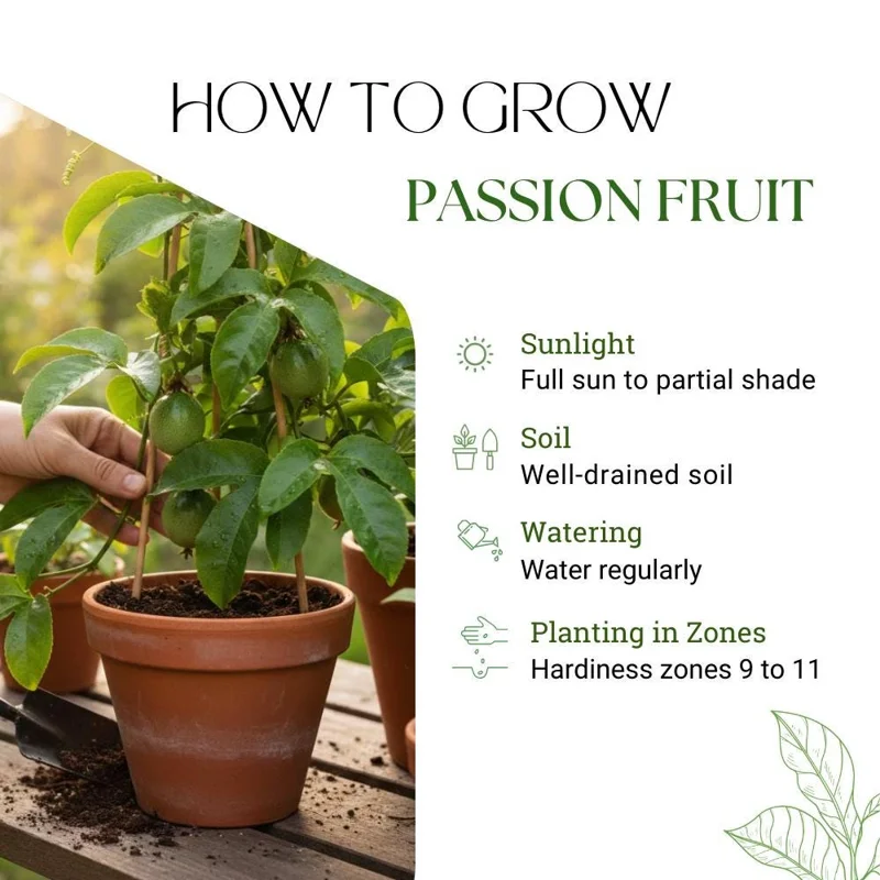 - Q: Is this plant easy to care for? A: Yes, passion fruit is generally considered easy to care for once established. It primarily needs consistent watering, well-draining soil, plenty of sunlight, and a structure to climb. Beginners can successfully grow passion fruit with basic gardening practices.