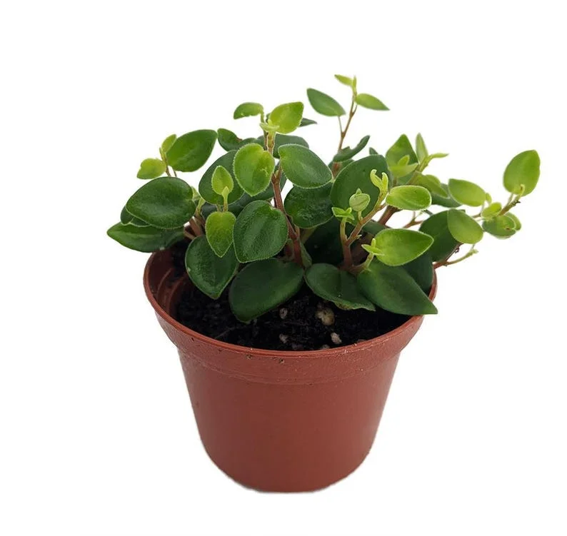 Enhance your indoor spaces with the compact size and trailing vines of the Pepperspot Peperomia, making it perfect for small spaces like apartments, desks, and windowsills. This plant shines in hanging baskets, kokedamas, or traditional pots, offering various décor possibilities. It is perfect for beginners, as it needs occasional watering and thrives with low light exposure. Like many houseplants, Peperomia contributes to improved indoor air quality. With its aesthetic appeal and low maintenance needs, this plant makes an excellent gift for plant lovers or beginners. This is a great indoor peperomia to add to your plant collection.
