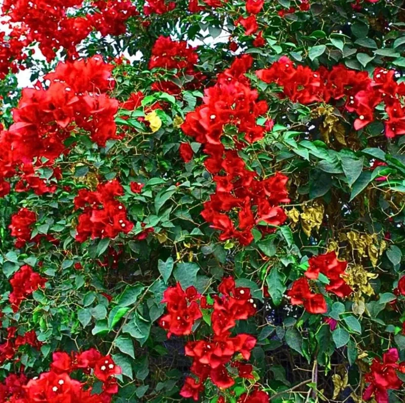 - Q: How big does this plant get? A: When mature and planted in the ground, a Red Bougainvillea live plant can grow to be quite large, typically reaching lengths of 15-30 feet, depending on support and growing conditions. In containers, their size is more restricted but still impressive.