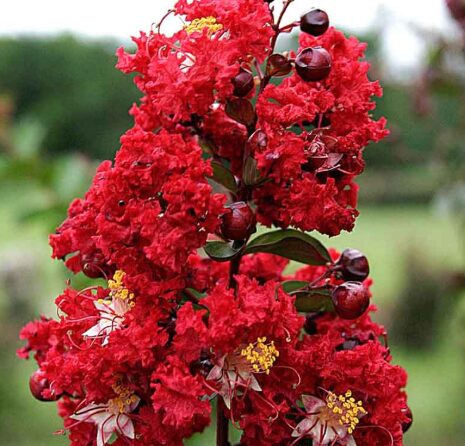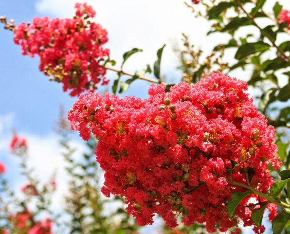 Reaching heights of 10-20 feet, this ornamental tree is perfect for small gardens, walkways, and urban spaces. It produces abundant clusters of bright red flowers from summer to early fall, adding a touch of elegance and vibrancy to any outdoor setting. With its fast growth rate, this crape myrtle quickly establishes itself, providing shade and beauty year after year.