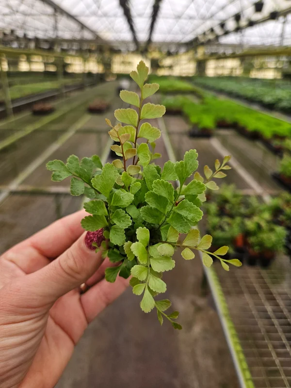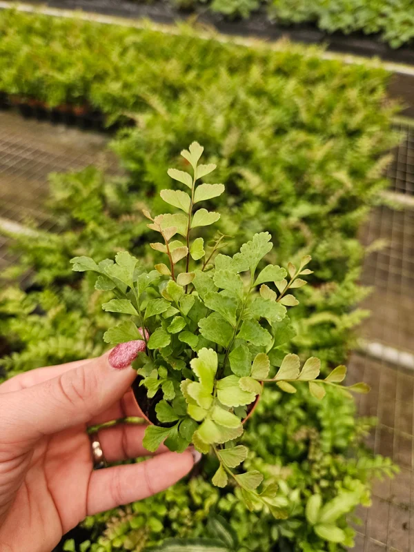 - Q: What condition will it arrive in? A: Your rosy maidenhair fern live plant will arrive as a carefully packaged, healthy, established plant in its 2-inch nursery pot, ready for acclimation to its new environment.