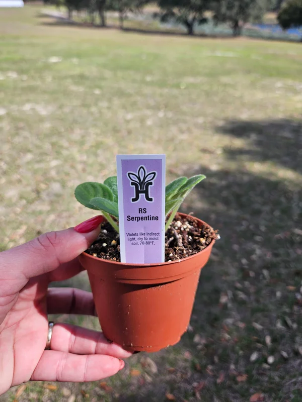 - Q: What condition will the plant arrive in? A: Your RS Serpentine African Violet live plant will arrive as a young, pre-finished starter in its 4 inch pot. While young, it will be healthy and ready to continue growing in your home.