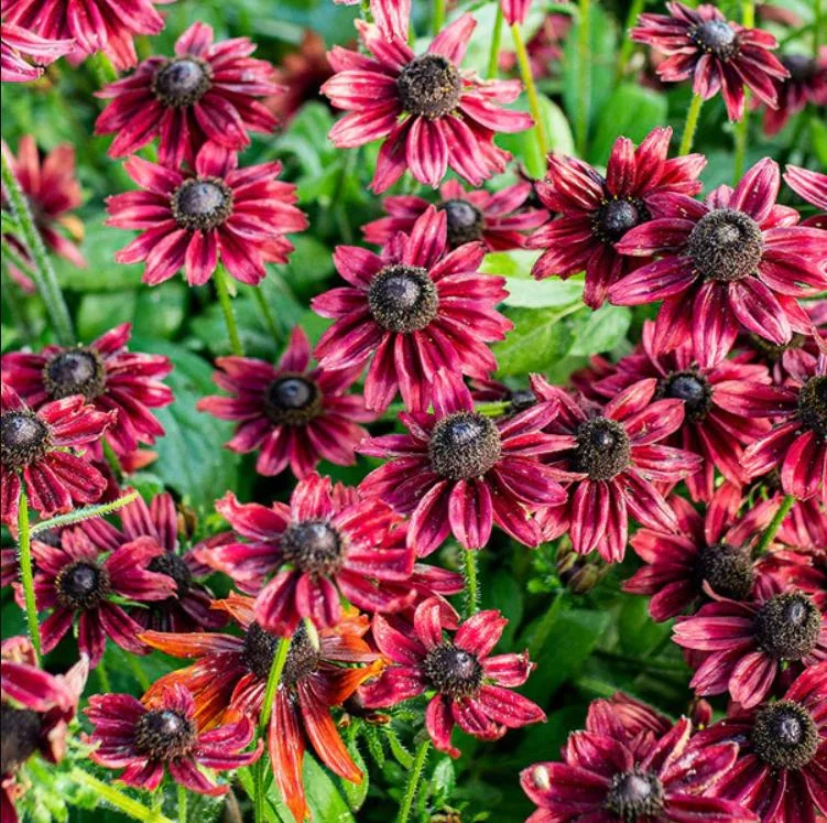 - Stunning Cherry-Red Blooms: Enjoy a prolonged display of unique cherry-red petals with a dark cone center, which provides a dramatic contrast to traditional yellow Black-Eyed Susans. These blooms create an eye-catching focal point in any garden design.