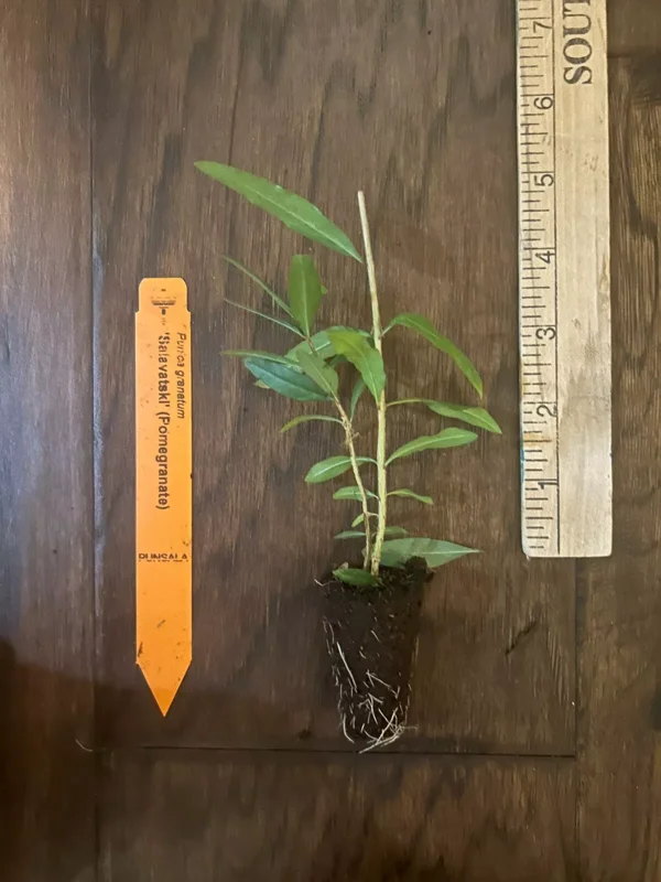 Indulge in the exquisite taste of the Salavatski Pomegranate (Punica granatum). This plant plug offers the opportunity to cultivate your own source of delicious and healthy fruit. Known for its exceptional flavor, the Salavatski pomegranate boasts plump, jewel-like arils that deliver a perfect balance of sweetness and tartness. Each fruit is packed with antioxidants and vitamins, making it a true superfood. Whether you enjoy it juiced, fresh, or as a vibrant garnish, the Salavatski pomegranate elevates any culinary experience.