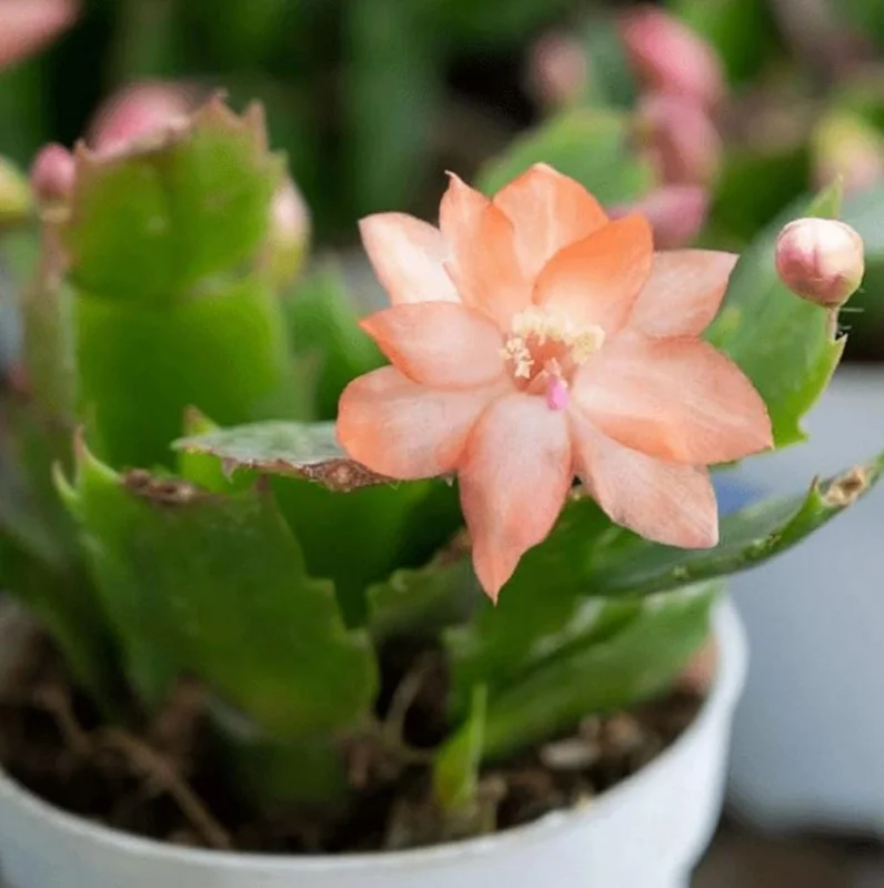 - Unique Growth Habit: As an epiphytic cactus, the Salmon Christmas Cactus has a distinctive segmented stem structure that adds architectural interest even when not in bloom. Its trailing habit can be quite elegant.