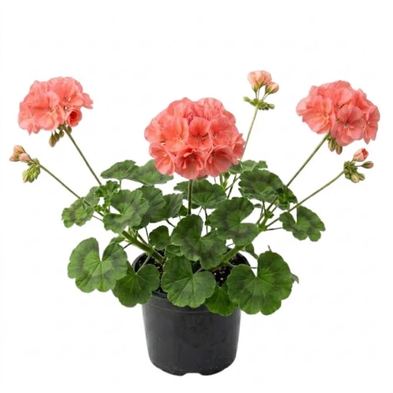 Light: Geraniums thrive in bright conditions. For optimal flowering, provide your salmon geranium live plant with full sun (at least 6 hours of direct sunlight per day). In regions with intense afternoon sun, particularly during summer, a location that receives partial sun or afternoon shade can help protect the foliage and prolong bloom life. Insufficient light can lead to leggy growth and fewer flowers. Water: Water thoroughly when the top inch of soil feels dry to the touch. It’s crucial to allow the soil to dry out slightly between waterings to prevent root rot. While geraniums appreciate consistent moisture, they do not like to sit in waterlogged conditions. Reduce watering frequency during cooler, cloudier periods. Soil: Plant your geranium in a well-draining potting mix. A good quality, all-purpose potting mix is usually sufficient. If planting in garden beds, ensure the soil is loose and drains well, amending with compost if necessary to improve soil structure. Temperature: Geraniums prefer warm temperatures and are sensitive to frost. They are typically grown as annuals in USDA Zones 3-8 but can be perennial in Zones 9-11. Protect them from temperatures below 40°F (4°C). Fertilization: Feed your salmon geranium care routine by applying a balanced liquid fertilizer every 2-4 weeks during the active growing season (spring through fall). This encourages continuous blooming and robust growth. Maintenance: To encourage more blooms and maintain a tidy appearance, deadhead faded flowers regularly. Simply pinch or snip off the spent blooms at the base of the flower stalk. This also prevents the plant from expending energy on seed production. Inspect your plant regularly for pests and address any issues promptly.