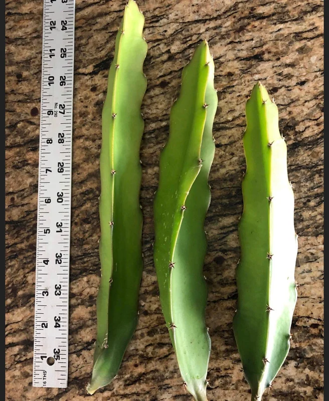 Cultivate your own tropical paradise with our Dragon Fruit Plant Cuttings. This set includes three healthy cuttings, each measuring between 10 and 12 inches in length. These cuttings are ready to root and grow into beautiful, fruit-bearing plants. Enjoy the satisfaction of harvesting your own exotic dragon fruit right from your garden. Dragon fruit is a climbing cactus and is easy to grow.