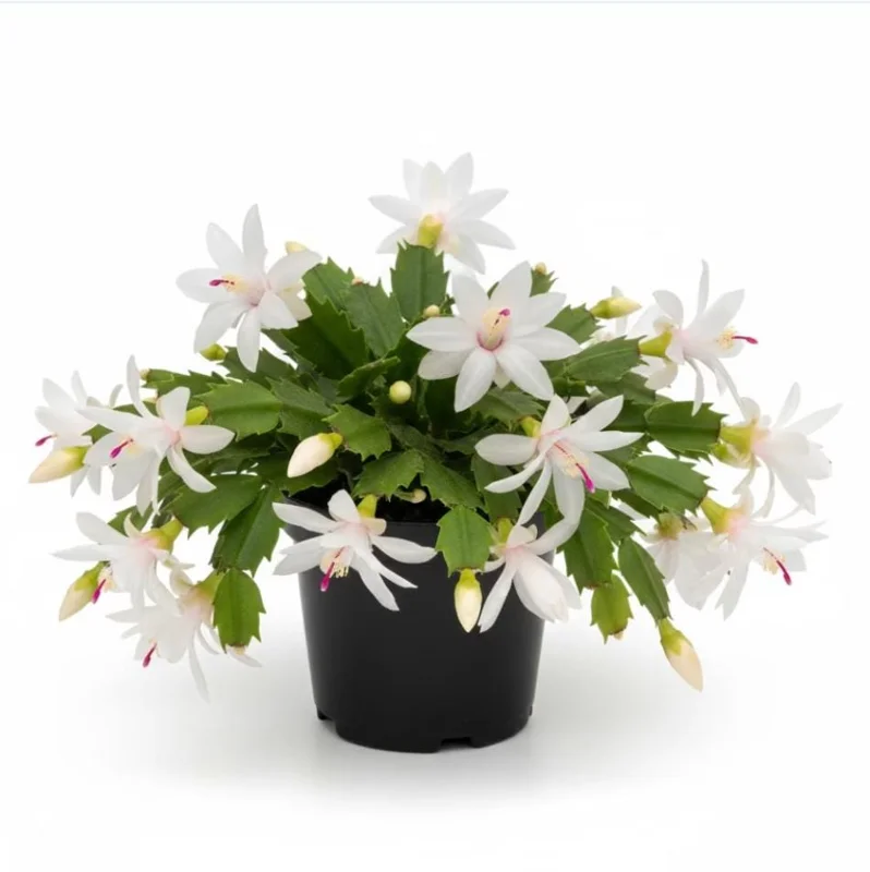 Often referred to as a Thanksgiving cactus white or Holiday Cactus, these plants are distinct from true desert cacti, preferring more humid conditions and indirect light. Their segmented, flattened stems cascade gracefully, making them ideal for hanging baskets or elevated planters where their future blooms can be admired. These starter plants provide an excellent opportunity to cultivate your own festive flora, allowing you to witness their growth and eventual blossoming. Embrace the joy of nurturing these unique plants and look forward to their enchanting white flowers gracing your home during the holiday season.