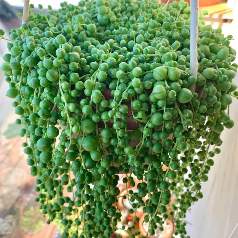 - Visually Striking Foliage: The most notable feature of this plant is its vibrant green, pearl-shaped leaves. These spherical beads create a mesmerizing, cascading effect, adding an architectural and organic touch to any room. It’s a natural focal point that draws the eye and enhances interior decor.