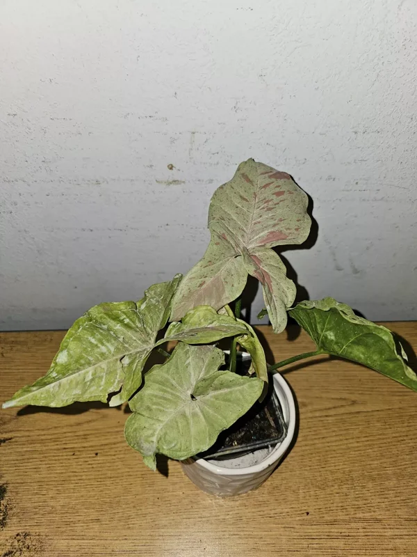 Whether placed on a desk, shelf, or patio, the Syngonium Milk Confetti will bring a fresh and lively atmosphere to any setting. Its unique variegation and easy-care nature make it a standout plant that will surely catch the eye. Enjoy the beauty and benefits of this delightful Arrowhead Plant in your home or office.