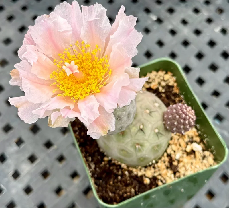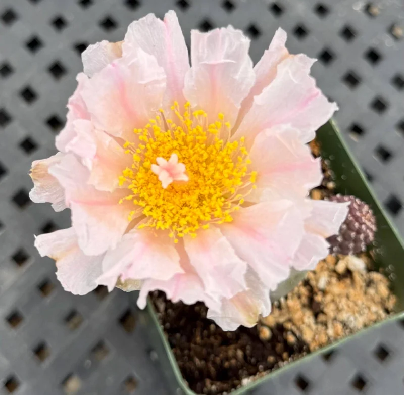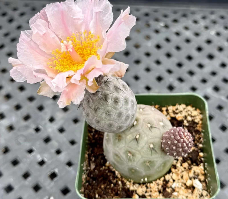 - Visually Interesting Flowers: During its blooming season, the Tephrocactus Geometricus produces beautiful white to pale pink flowers. These delicate blooms provide a lovely contrast to its geometric form, adding seasonal interest.