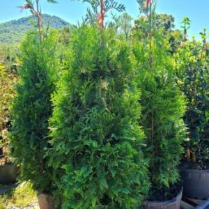 Perfect for landscaping, privacy fencing, noise reduction, and wind protection, the Thuja Green Giant thrives in various soil conditions and adapts to full sun or partial shade.