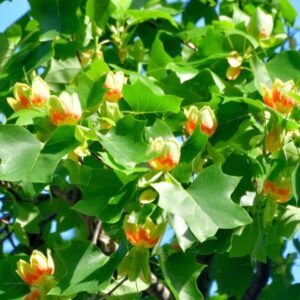 Reaching heights of 80-150 feet, the Tulip Poplar is among the tallest trees in the eastern United States. It develops a pyramidal canopy in youth, gradually maturing into a broad, spreading crown. During spring, the tree showcases yellow-green, tulip-like flowers with an orange center, attracting pollinators such as bees and butterflies. As autumn approaches, its foliage turns into a brilliant golden-yellow, adding seasonal interest to any landscape.