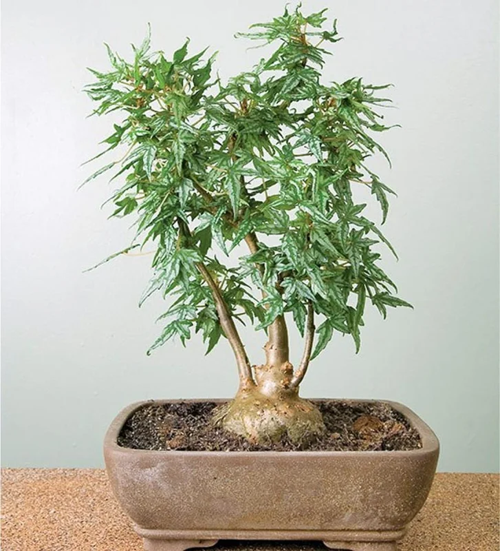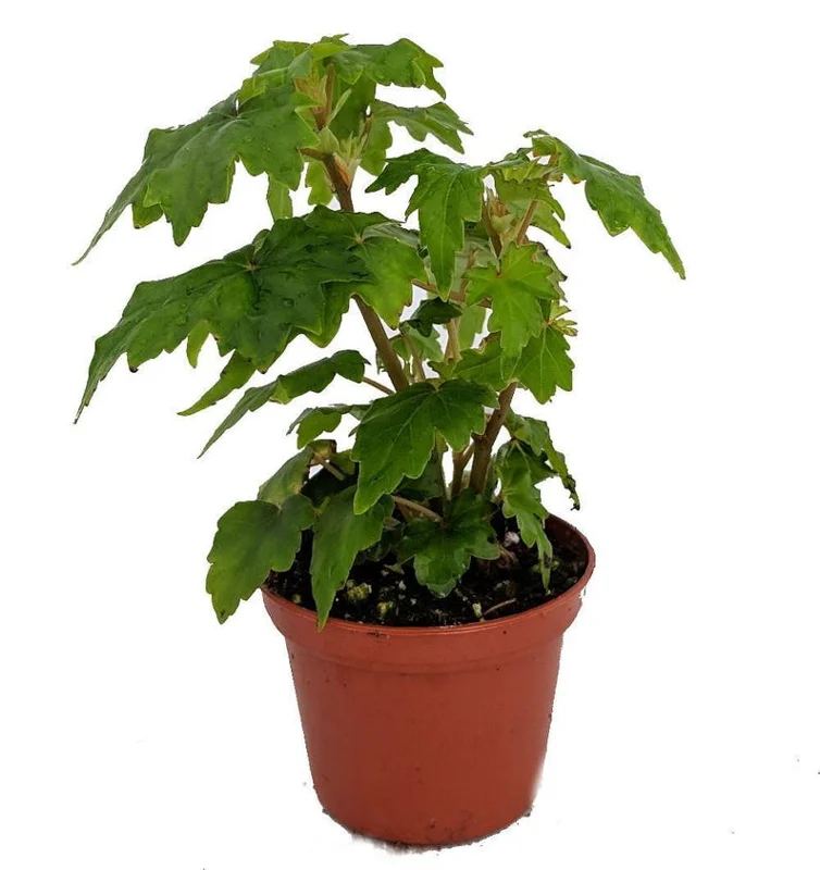 The Tweedle Dee Begonia Plant (Begonia dregei ‘Tweedle Dee’) is a striking miniature plant, perfect for bonsai cultivation, terrariums, and fairy gardens. Known for its thick, smooth caudex and delicate, deeply-lobed leaves adorned with silver markings, this begonia offers a unique ornamental appeal. Small, white flowers emerge during the summer, adding seasonal beauty to this delightful plant. The Tweedle Dee Begonia is a resilient and versatile choice that enhances any living space with minimal maintenance.