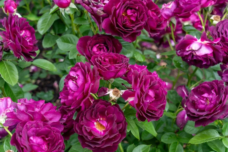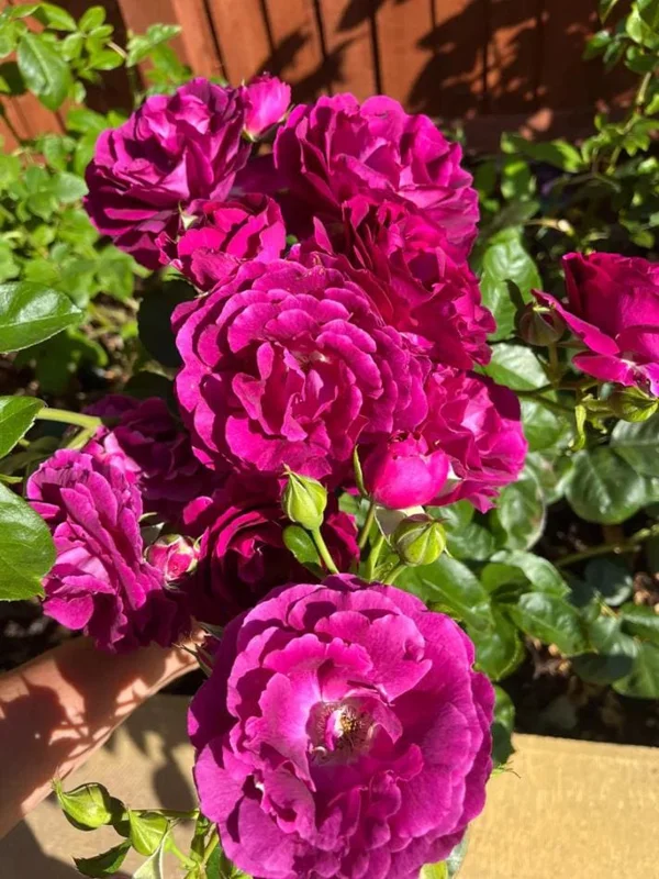 - Q: How much sunlight does it need? A: This purple rose bush requires full sun, meaning at least 6 hours of direct sunlight per day. In very hot climates, providing some afternoon shade can help protect the blooms.