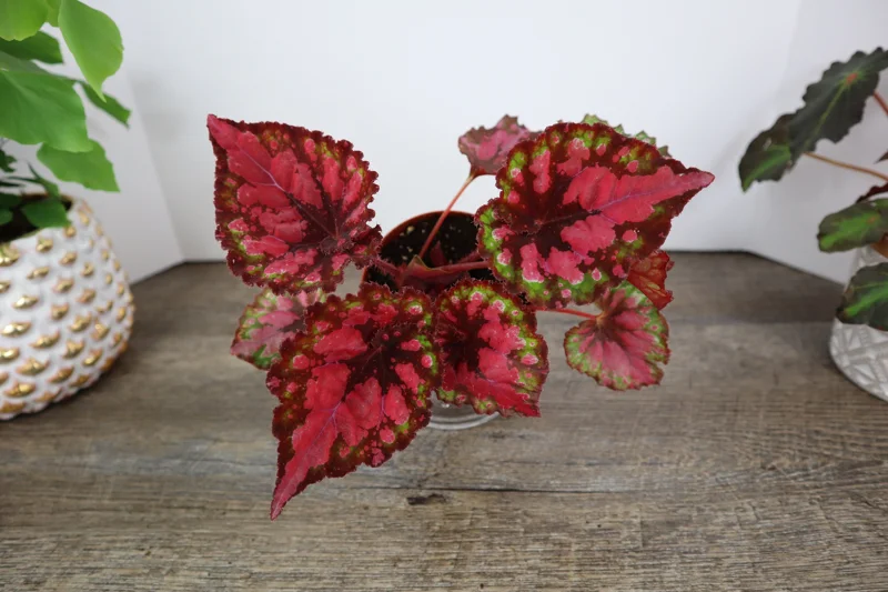 - Stunning Ornamental Foliage: The primary appeal of the Vampire Kiss Begonia live plant lies in its incredibly vibrant and multifaceted leaves. Each leaf displays a complex tapestry of colors including deep reds, dark greens, and striking metallic accents, ensuring it stands out as a focal point in any room.