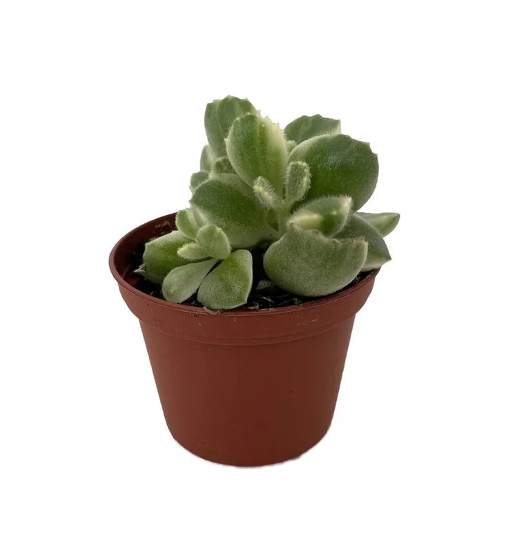 This succulent stands out with its fuzzy green leaves, beautifully contrasted by cream-colored stripes. The unique leaf structure, complete with tiny teeth along the edges, gives the appearance of miniature claws, hence the endearing name “Bear Paw.” Each leaf grows to approximately 1.5 inches, creating a playful and appealing aesthetic that resonates with plant lovers of all kinds. The Variegated Bear Paw Succulent is a delightful addition to any collection.