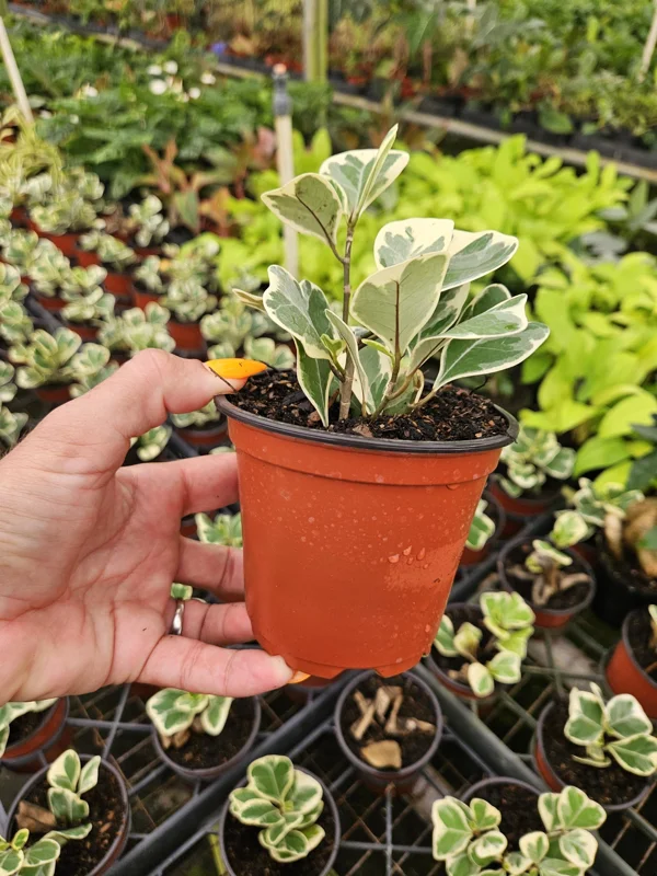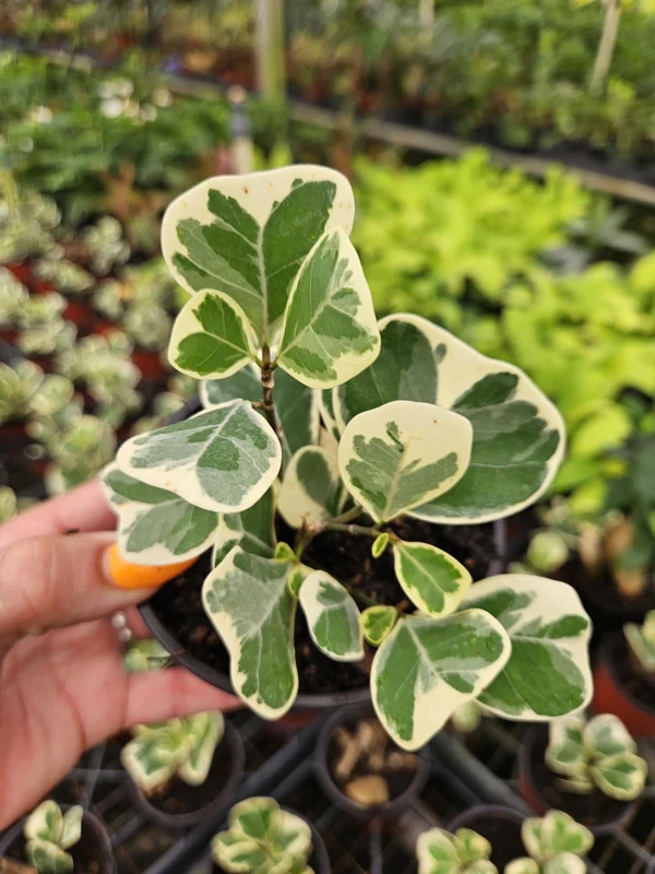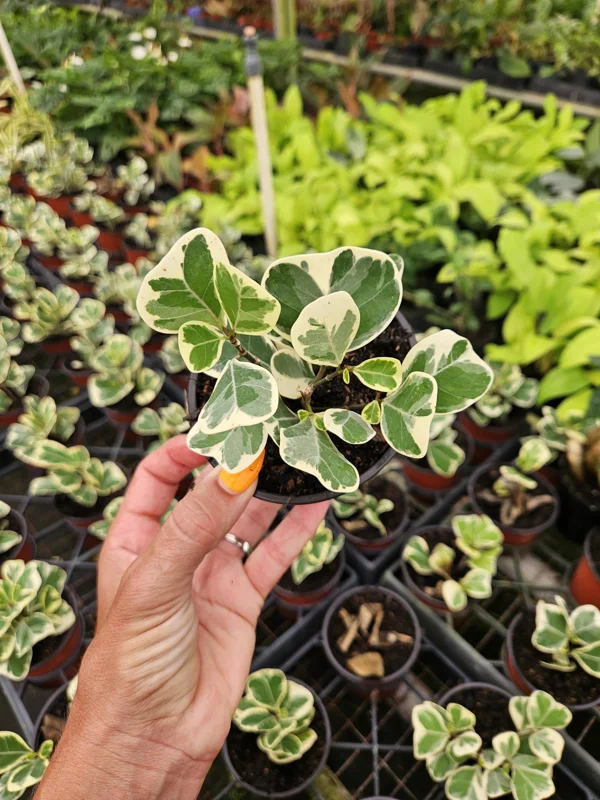 - Q: What condition will the plant arrive in? A: Your variegated ficus triangularis live plant will arrive carefully packaged in its 4-inch nursery pot with soil, ready for its new home. We take great care to ensure it reaches you in excellent condition, similar to the photos.