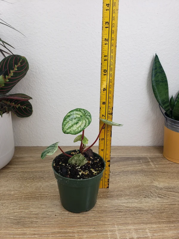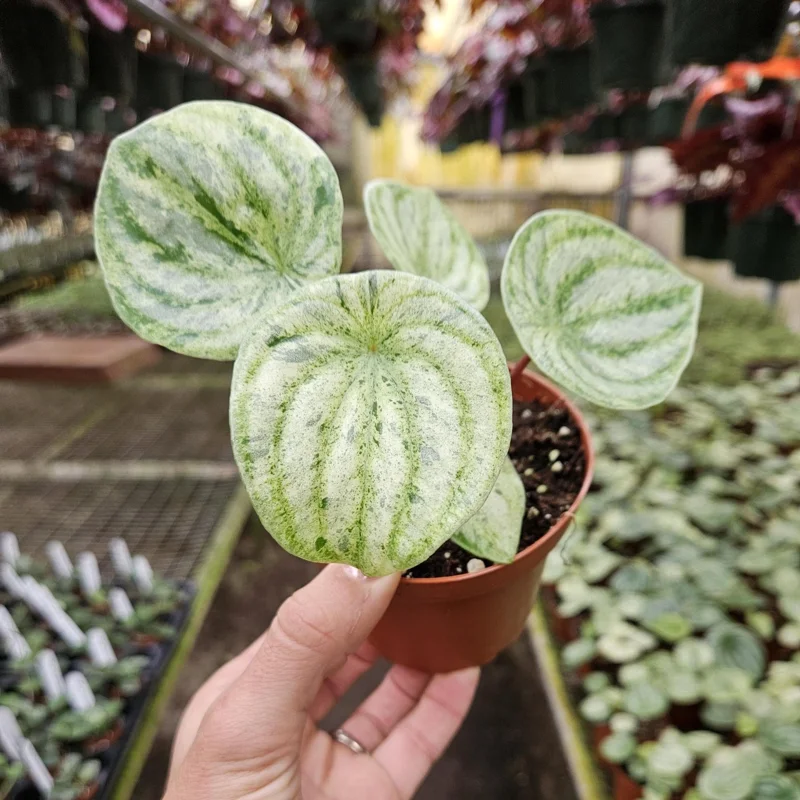 - Q: How big does this plant get? A: The Variegated Watermelon Peperomia live plant typically grows to an indoor height of 8-12 inches with a similar spread, creating a beautiful, compact mounding habit. It is shipped in a 4 inch pot, ready to grow.