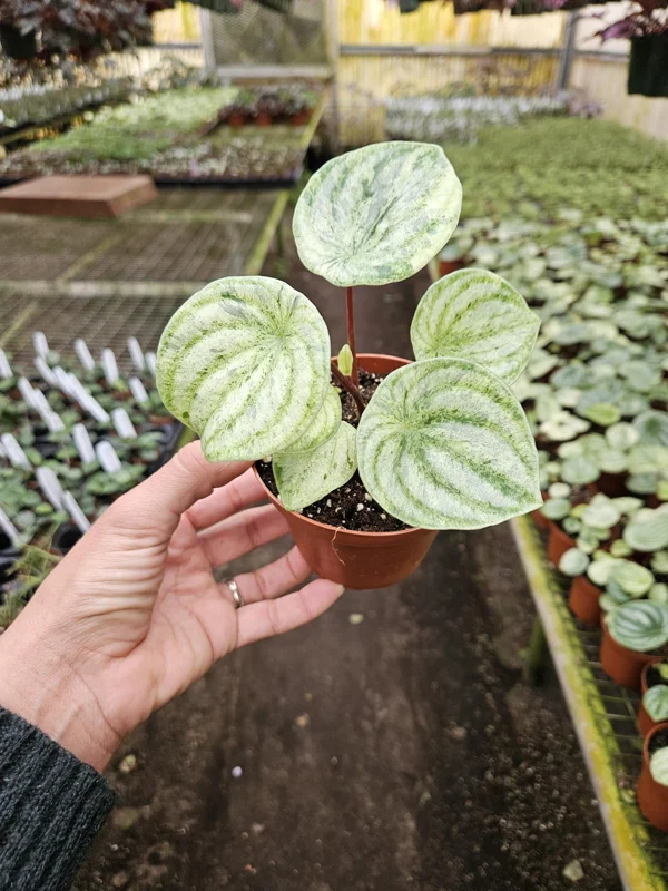 - Q: What makes this a ‘rare’ Peperomia? A: While Peperomias are common, this specific variegated form of the Watermelon Peperomia (Peperomia argyreia) features a unique speckled pattern that is less common than the standard variety, making it a desirable and rare Peperomia for collectors.