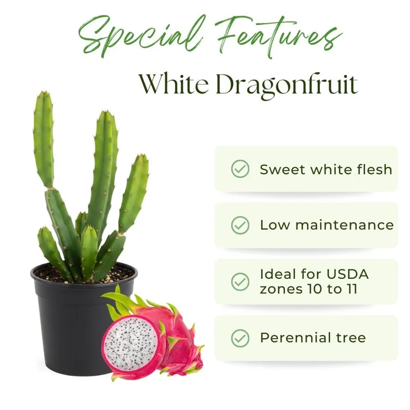 - Homegrown Delicacy: Enjoy fresh, ripe edible tropical fruit directly from your own plant. The white-fleshed dragon fruit is known for its sweet, subtle flavor and refreshing texture, perfect for smoothies, desserts, or eating fresh.
