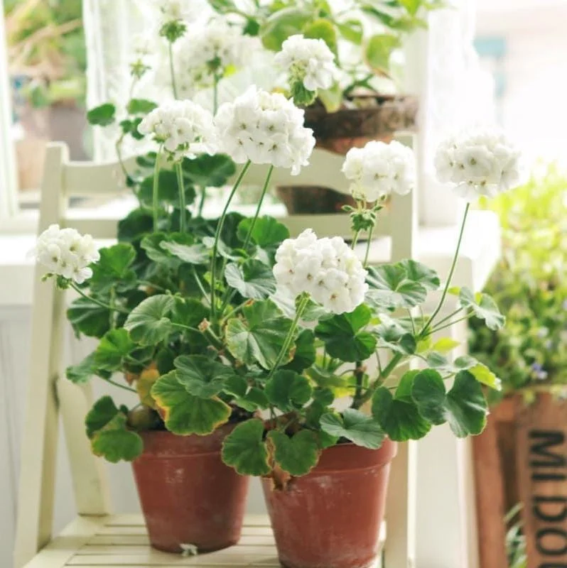 - Q: Can I grow these in hanging baskets? A: Absolutely! These garden geraniums are excellent for hanging baskets, where their beautiful white flowers can spill over the sides, creating a stunning visual display.