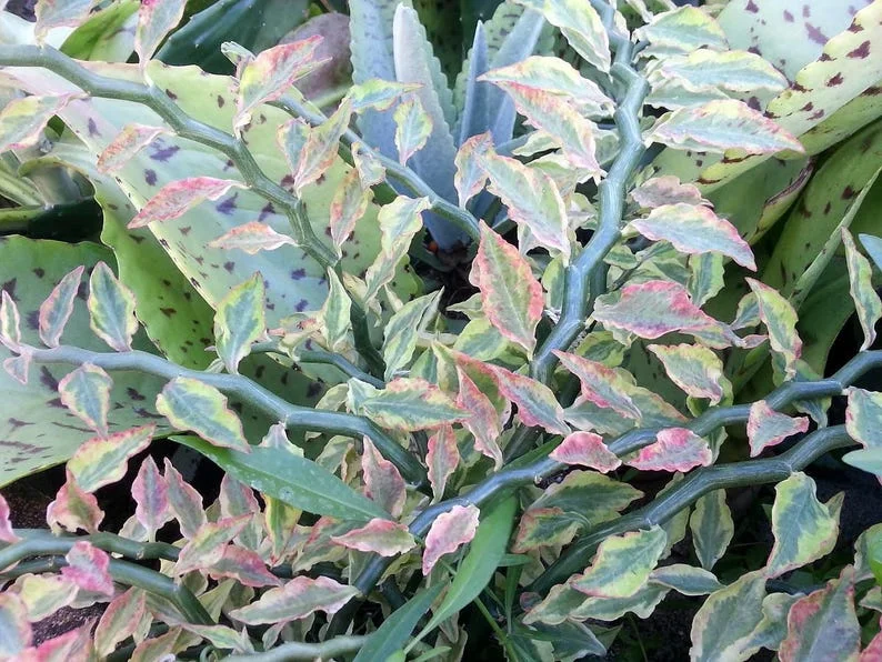 During cooler seasons, the variegated leaves take on a pinkish hue, adding seasonal beauty to your space. Whether used as a decorative houseplant or an outdoor feature, the Devil’s Backbone brings vibrant color and exotic structure. Related to the Christmas poinsettia, this plant requires minimal care, making it an excellent choice for beginners and seasoned gardeners alike. This plant brings a unique charm to any setting.