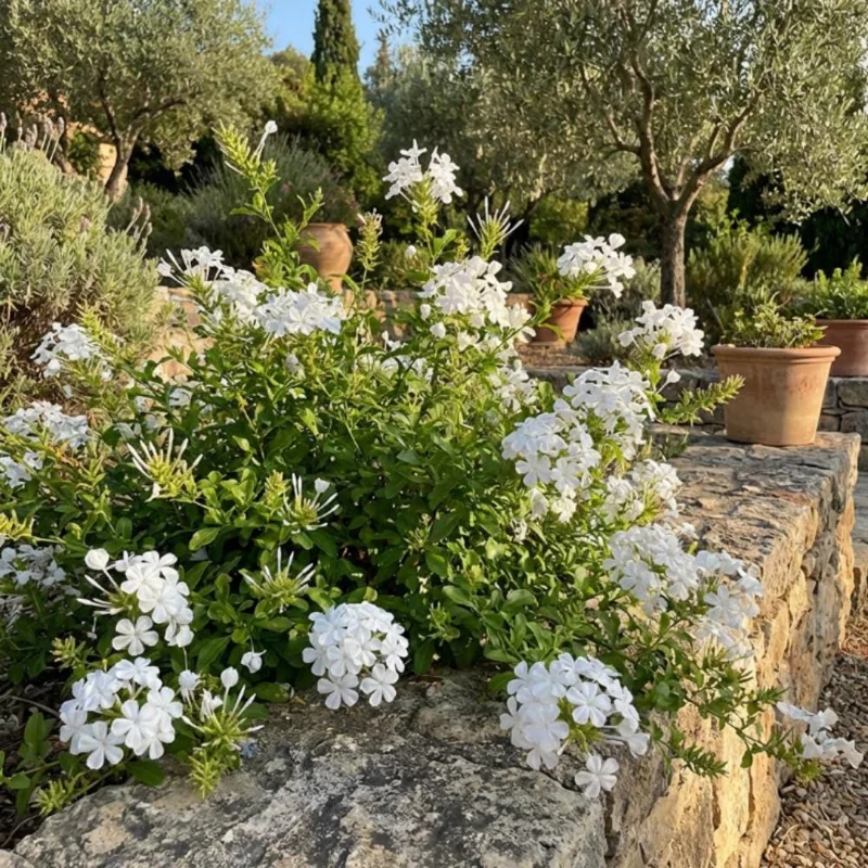 The plumbago for garden use is highly adaptable, thriving in warm climates and bringing a touch of Mediterranean charm. It’s an excellent option for gardeners looking to add continuous bloom through the warmer months. With proper care, this shrub will mature into a lush plant covered in a profusion of white blossoms, providing a refreshing contrast to green foliage.