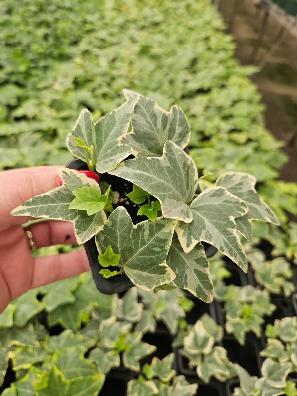 - Q: What condition will it arrive in? A: Your white variegated English ivy live plant will arrive as a healthy, well-rooted plant in its nursery pot, carefully packaged to ensure its safe journey to your home.