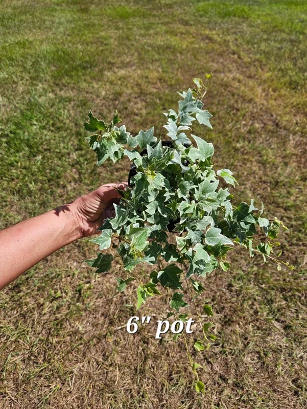 - Q: How big does this plant get? A: The white variegated English ivy live plant can grow quite long, with vines reaching several feet indoors when given proper care and conditions. The initial size will depend on whether you choose the 3-inch or 6-inch pot.