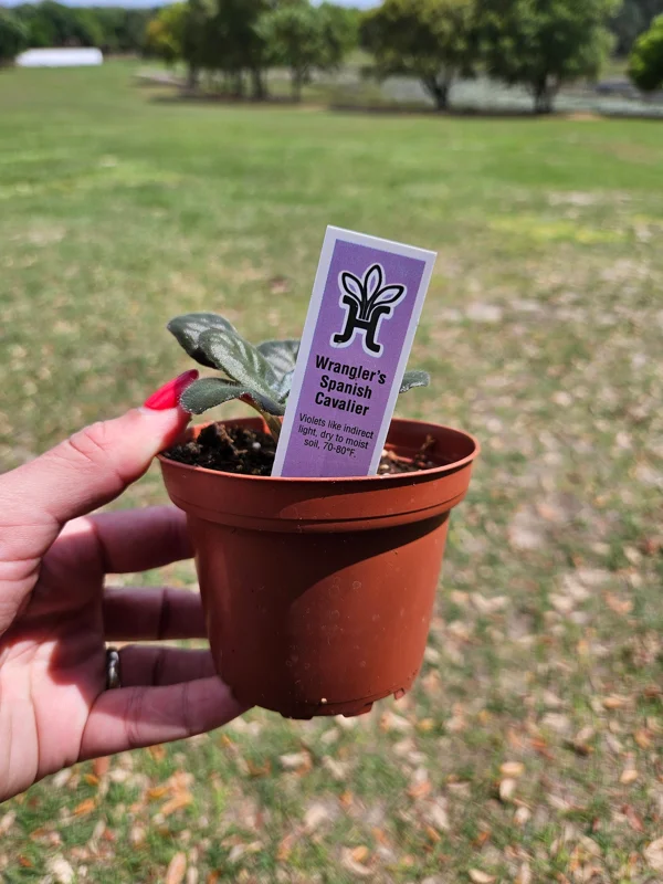 - Q: How big does this African Violet live plant get? A: This ‘Wranglers Spanish Cavalier’ African Violet live plant is a young starter in a 4-inch pot. When fully mature, it typically grows to about 6-8 inches in diameter, making it a compact and charming houseplant.