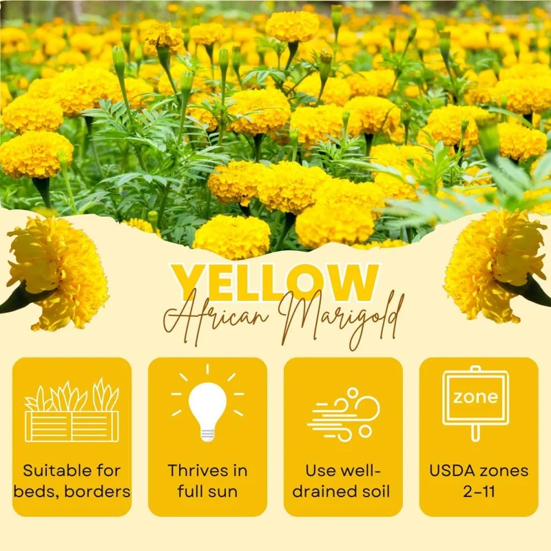 - Easy to Grow: Known for its resilience and adaptability, this Yellow African Marigold live plant is relatively low-maintenance, making it an ideal choice for gardeners of all skill levels, including those new to gardening.