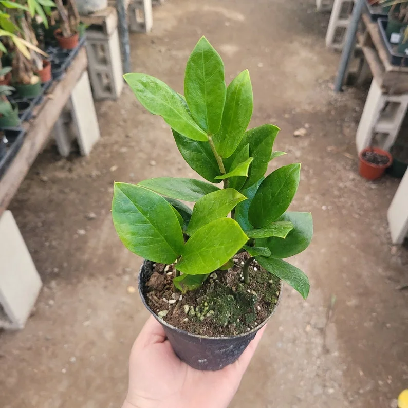 The ZZ Plant (Zamioculcas zamiifolia) in a 4in pot is an excellent choice for plant lovers of all experience levels. Known for its glossy, deep green foliage, this hardy plant thrives in low light conditions and requires minimal watering, making it perfect for busy individuals or those new to plant care. The ZZ Plant is also a natural air purifier, helping to remove toxins and improve indoor air quality. Its drought-tolerant nature means it can survive with infrequent watering, making it one of the best low-maintenance houseplants available.